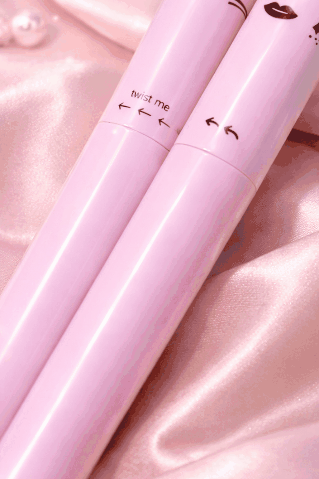 Im pinken Set enthalten sind: ein schwarzer Eyeliner, ein brauner Brauenstift, ein